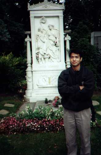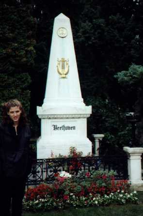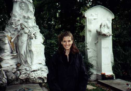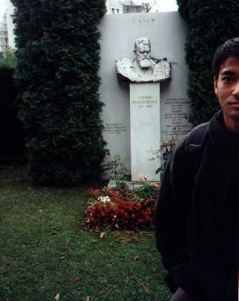 Afterwards, we debated what we should do. We didn't want to go to the Imperial Apartments as Schönbrunn was supposedly a more impressive palace. But it was not terribly close, and we weren't sure we wanted to walk around another palace. So, we decided to go to the Central Cemetary where most of Vienna's most famous citizens were buried. There we saw Brahms, Strauss (both), and Beethoven's graves in a special music section. Mozart is conspicuously absent (although there is a memorial to him there), because he was buried in an unmarked grave in the pauper's cemetary, as he died in poverty. We also Boltzmann and many other famous people there. We then headed to the Jewish cemetary where many of the graves were destroyed or poorly kept. It was sad to see the cemetary, as many tombs had been rebuilt after the war by American relatives of Jews killed by the Nazis during World War II.