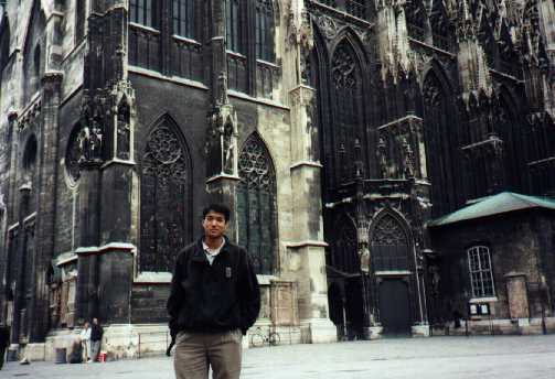We arrived in Wien early in the morning. At the train station we figured out how to obtain money from the local ATMs or "geld" machines and how to use the metro. We took the metro to a station we thought was near the youth hostel. After walking for a little bit, we arrived at the Hosteling International Jugendherbergen at 7 Myrthengasse 7, just as people were lining up for breakfast and checking out. We were nervous about paying for a room without seeing the facilities, but we went ahead with it and locked our packs in the locked room. We then took the metro to Stephansplatz.