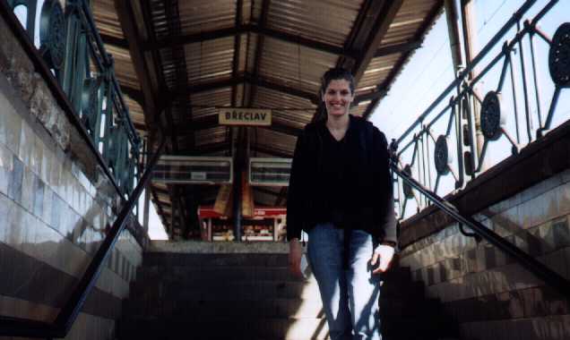 The plan would have worked perfectly, too. We bought our tickets in Wien, spent our remaining schillings on miscellaneous junk, and got on the train, where the customs officials checked our passports at the border crossing. When we got off at Bréclav, the person who changed money didn't speak any English, but worse, would not take any traveler's cheques nor credit cards. We only needed $6.50 for each of our tickets, but we had trouble raising it because we had spent most of our extra schillings and they wouldn't take the few coins I had. Luckily, I had a few single dollar bills left, and we were able to purchase our ticket.
